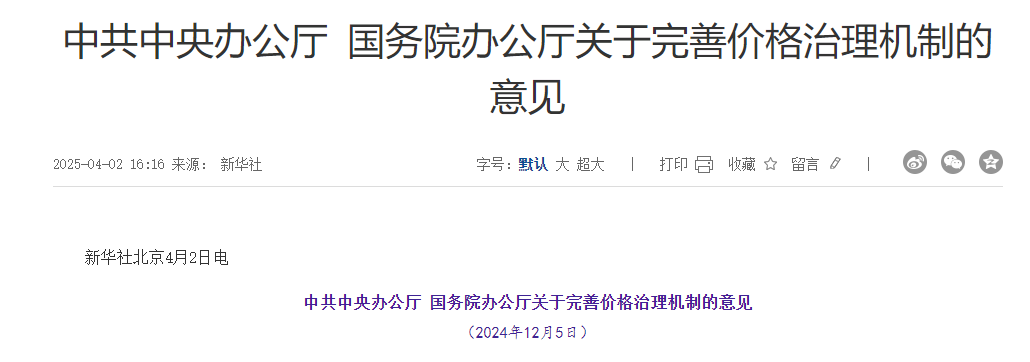 近日,中共中央辦公廳、國務院辦公廳發布《關于完善價格治理機制的意見》。文件要求,圍繞充分發揮市場在資源配置中的決定性作用、更好發揮政府作用,健全市場價格形成機制,創新價格引導機制,完善價格調控機制,優化市場價格監管機制,提高資源配置效率。文件提到,加快重點領域市場建設。推進重要商品現貨、期貨市場建設...
