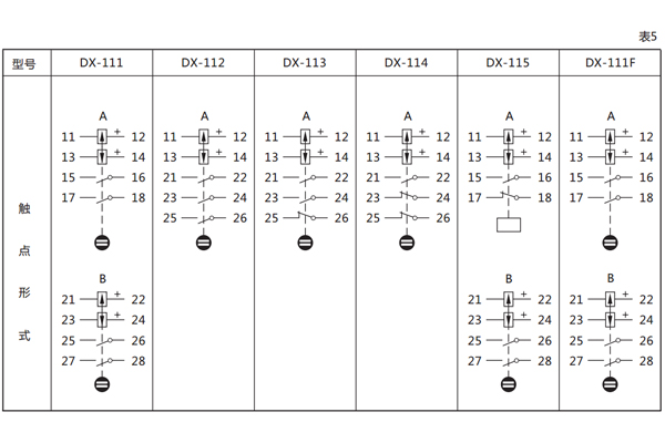 11、觸點斷開容量:DC當L/R≤40ms,250V,2A,50W。AC 250V,5A(COSφ=0.4)500VA。 如果增加觸點斷開容量可按表5內數據將觸點串聯。