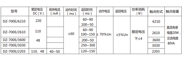 DZ-700E/2203中間繼電器主要技術(shù)數(shù)據(jù)見(jiàn)表